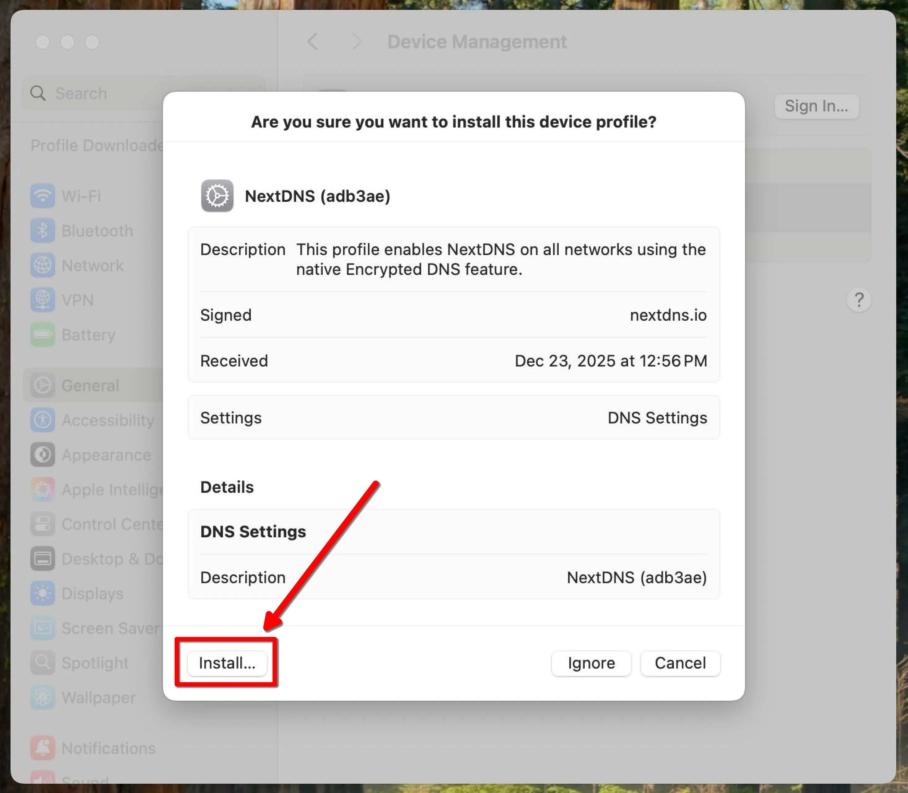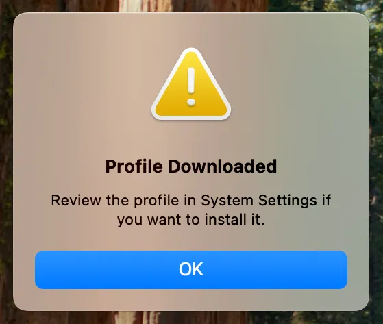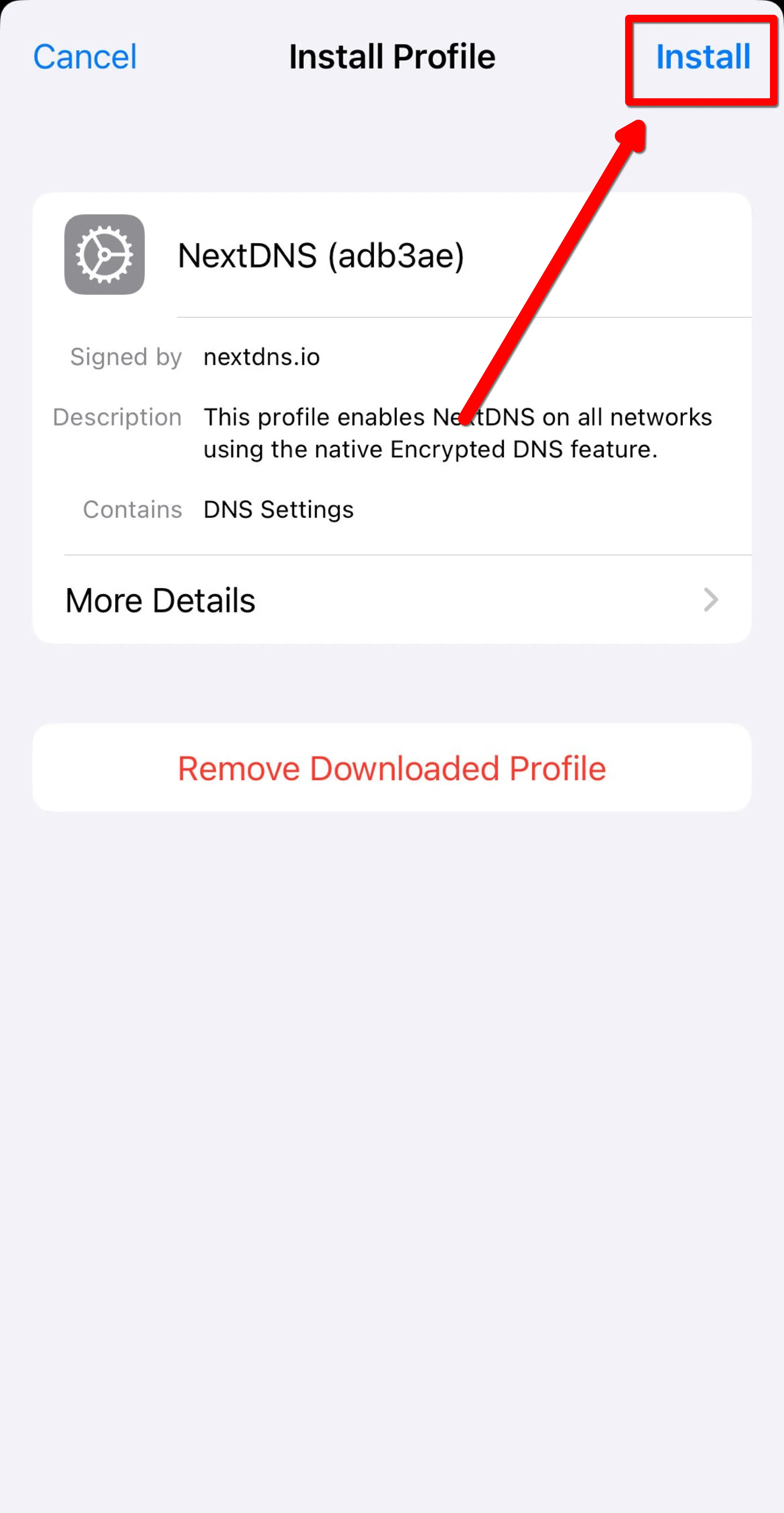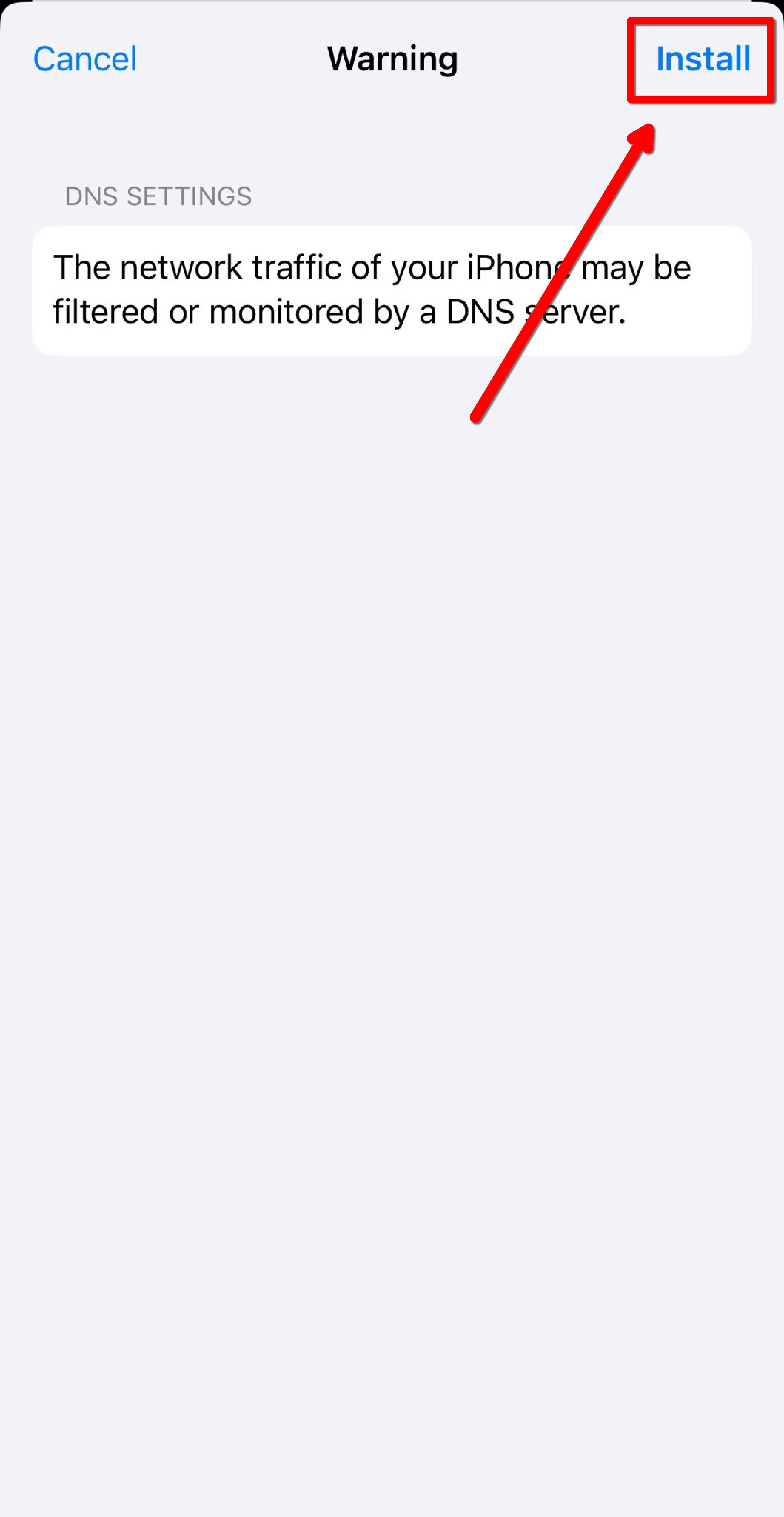 Download your custom DNS profile and open the file, you should see a Profile Downloaded pop-up